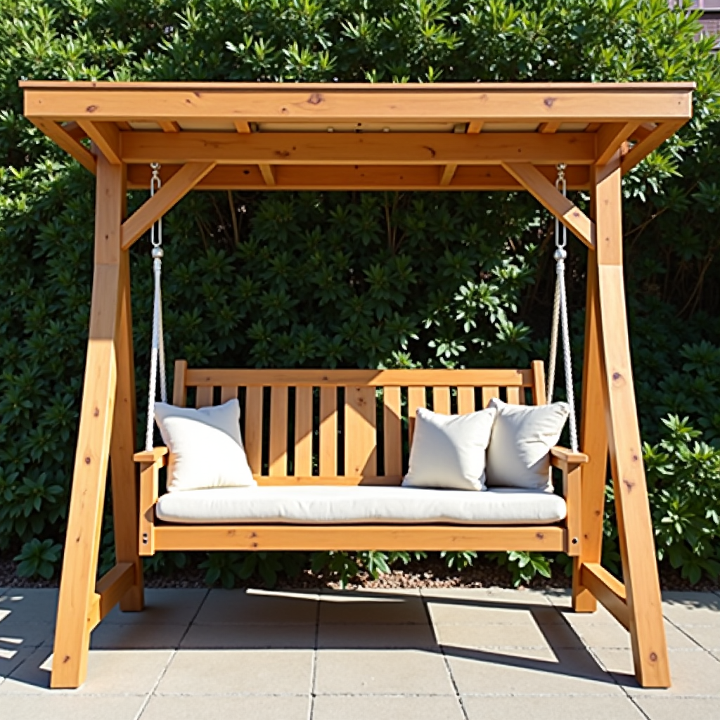 Xích đu gỗ ngoài trời, bền đẹp, mang lại không gian thư giãn lý tưởng.